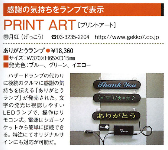 「ありがとうランプ」がCAR GOODS MAGAZINの7月号(P89)で掲載されました。